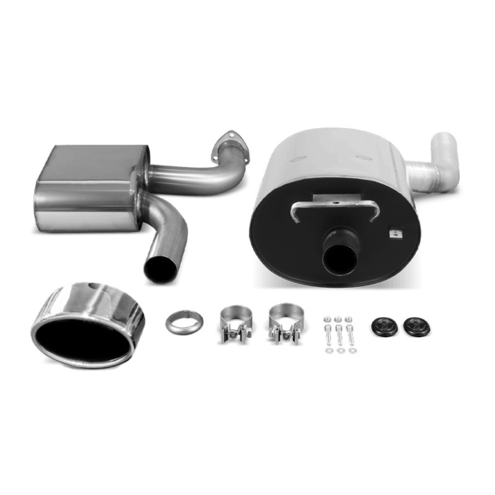Alle benötigten Teile werden mitgeliefert, ein Absägen der originalen Auspuffanlage ist nicht nötig. Die komplette Anlage geht ab dem Kat los.